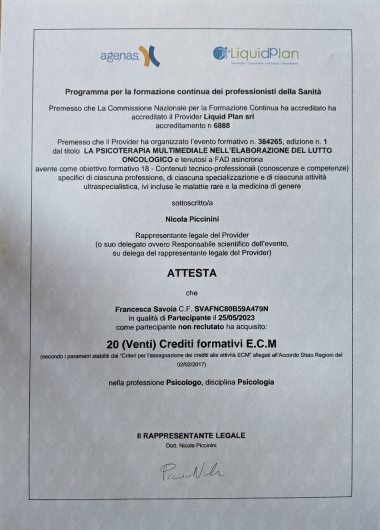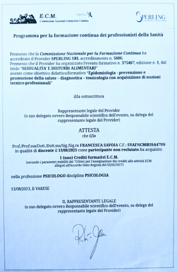 Seguo regolarmente corsi di formazione e aggiornamento su varie tematiche legate alla mia professione prevalentemente su adulti e adolescenti.